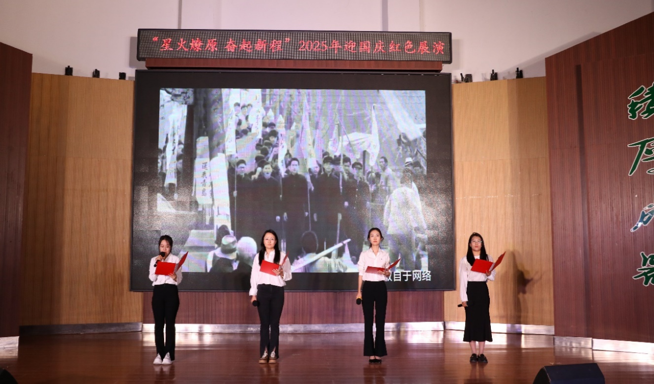 为热烈庆祝中华人民共和国成立76周年,弘扬红色文化、传承红色基因,9月29日,yl7703永利集团与辅导员“明理知行”宣讲团以“星火燎原,奋起新程”为主题,联合举办2025年迎国庆红色展演活动。信电学院党委书记刘彤彤、党委宣传部副部长闯垒、党委学生工作处副部长王利娥、校团委副书记平红、动物科技学院党委副书记郑永文、人文学院党委副书记段莉莉、信电学院党委副书记刘传明,理学院党委副书记时启宏,园艺园林学院党委副书记徐娟莅临现场。150名观众和200余名演职人员共同重温红色记忆,追溯百年荣光。